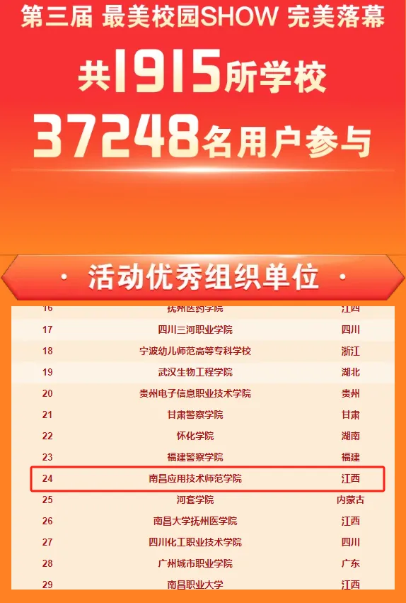 2025年11月5日,由超星移动图书馆主办的“金秋画卷 诗意校园”主题摄影展圆满落幕,此次活动吸引全国共1915所学校、37248名用户参与。我校图书馆精心的策划组织下,共有百余名师生踊跃投稿,经过激烈角逐,荣获“优秀组织奖”、14位学生的参赛作品获奖的好成绩,充分展现了图书馆的专业服务水平与创新能力。